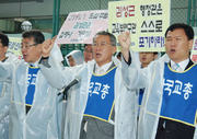 한국교총(회장 이원희)은 16일 광화문 정부중앙청사 후문에서 '청와대 낙하산 인사 저지투쟁'을 벌였다. 이날 참석자들은궂은 날씨 속에서도 불법 권력형 인사를 철회할 것을촉구하며 요구사항이 관철될 때까지 투쟁할 것을 다짐했다.