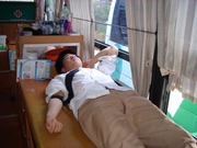 5월 18일 9시 30분. 학교 주차장에 대한적십자사의 붉은 십자마크가 선명한 헌혈차 두 대가 들어왔다. 학생들의 헌혈을 받기 위해서라고 한다. 수업 받기 싫어하던 녀석들은 좋은 핑계거리라도 만난 듯 너도나도 헌혈을 한다고 빠져나간다. 이 녀석들이 정말 헌혈을 하는지 어쩐지 뒤따라가 봤더니 버스 안은 이미 헌혈하려는 학생들로 붐비고 있었다. 아이들의 밝은 표정에서 헌혈에 대한 두려움은 찾아볼 수 없었다. 그저 예쁜 간호사에게 손을 맡긴 채 싱글벙글이다. 헌혈이 끝나자 맛있는 음료수와 과자를 받아든 녀석들은 마치 개선장군이라도 된 듯 의기양양하다. 지금 이 순간에도 수혈을 받지 못해 죽어가는 고귀한 한 생명을 살렸으니 충분히 그럴 만도 하다. 취재를 마치고 나오면서 담당자와 헌혈에 대해서 몇 마디를 나눴는데 사태는 심각했다. 로봇이 가수에 데뷔한다고 요란을 떠는 첨단 시대인데도 아직 혈액을 인공으로 만들거나 대체할 물질은 개발하지 못한다고 한다. 또한 혈액은 살아있는 세포이므로 장기간 보관할 수도 없다는 것이다. 우리의 생명을 유지시켜주는 물질치곤 성격이 굉장히 괴팍한 편이란 것이다. 헌혈버스 내부 모습 헌혈을 끝내고... 아이러니 하게도 사회가 발전하면 할수록 필요한 혈액은 급증하는데 반해, 헌혈 참여는 점차 줄어든다고 한다. 현재 수혈은 전적으로 헌혈에만 의존해야되는 상황이므로 이 같은 헌혈자들의 감소는 정말 심각한 사태를 불러올 수도 있다는 것이다. 왜냐하면 교통사고나 각종 질병 등이 늘어나면서 필요한 혈액은 급증하고 있는데 비해 건강한 혈액은 줄어들고 있기 때문이란 것이다. 그나마 다행인 것은 현재 필요한 양의 80% 정도를 학교의 학생이나 군인들이 제공하고 있어 겨우 위기를 모면하고 있다는 것이다. 이런 것을 보면 우리 학생들이 얼마나 고마운 존재인지 새삼 깨닫게 된다. 참고로 헌혈을 하게 되면 새로운 피가 금방 생기므로 건강에 좋을 뿐더러 정확한 혈액형과 B형간염바이러스항원, C형간염바이러스항체, 간기능수치검사, 매독항체, 총단백 등을 무료로 검사 받을 수 있어 일석이조의 효과가 있다고 한다.