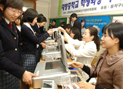 서울 대방중학교(교장 이선희) 재학생들은 26일 동작구선거관리위원회 후원으로 터치 스크린 전자투표기로 학생회장.부회장 선거를 실시 했다. 학생들이 전자투표를 할 수 있는 카드를 발급 받기 위해 지문인식기에 지문을 등록하고 있다.