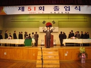 제51회 졸업식 장면 졸업생들이 재학생 대표의 송별사를 듣고 있다. 재학생 대표 이건영 군이 송별사를 낭독하고 있었다. 지난 2월 08일 오전 열 시, 본교 송파수련관에서 제51회 졸업식이 있었다. 오늘의 주인공인 졸업생 288명은 그동안 헌신적으로 지도해 주신 선생님과 부모님들부터 따뜻한 축하를 받으며 밝은 미소를 지었다. 이날 행사에는 심관수 이사장, 차성남 총동창회장, 김영제 육성회장 등 학교 관계자 분들이 참석했으며 조규선 서산시장과 이복구 충청남도의회의원 등 많은 내외 귀빈들이 참석해 학생들의 졸업을 축하했다. 김기찬 교장은 졸업 축사에서 "졸업은 끝이 아니라 새로운 출발임을 강조하며 대학에 가서도 고교시절의 초심(初心)을 잊지 말고 공부에 정진해 줄 것을 당부"했다. 이에 대해 고재우 학생회장은 그동안 가르쳐 주시고 길러주신 스승님과 부모님께 큰절을 올리며 감사를 표시했다. 졸업생들은 식이 끝난 뒤 삼삼오오 모여 스승님을 모시고 기념촬영을 했다.