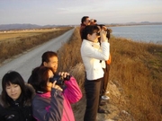 - 천수만 철새 기행전을 다녀와서 - 가을이 떠나는 끝자락, 우리 선생님들은 반대로 새를 찾아 떠났다. 천수만의 철새기행전을 떠나기 전 나는 탐조(探鳥)만큼 감동적이고 낭만적인 여행도 드물 것이라는 즐거운 상상을 했다. 새는 그 자체가 싱싱한 자연이고, 탐조여행은 자연과 하나가 되는 숭고한 행위이기 때문이다. 수만 마리의 새들이 한꺼번에 하늘을 날아오르는 모습은 분명 장관일 터이고, 새들이 펼치는 행위는 감성적인 예술일 것이란 판단에서였다. 힘찬 날갯짓으로 창공에 각종 기하학적 문양을 수놓는 철새들을 보며 비상 아닌 비상을 꿈꿔보고자 했다. 그러나 천수만 A지구 제1탐조 투어버스에서 바라본 새들은 그렇게 낭만적이지도 흥성스러워보이지도 않았다. 새들은 춥고 외로워 보여 안쓰러웠다. 천수만의 낙조가 너무 아름답고 추운 계절이 오고 있기 때문이라고 설명하기엔 이유가 빈약하다. 오호라, 곰곰이 생각해 보니 각종 개발로 생명의 기원이자 새들의 터전인 갯벌이 점점 줄어들고 있기 때문이란 생각이 들었다. 철새들이 배불리 먹으며 겨울을 날 수 있도록 총 220만평의 논에 벼와 보리 등을 수확하지 않고 그대로 놓아두었다고는 하지만 워낙 많은 새들이 모여들어 한계가 있는 듯했다. 그도 그럴 것이 인공은 자연을 대신할 수 없기 때문이다. 새들은 왜 저렇게 한자리에 모일까. 문득 간월도의 일몰을 바라보다 든 생각이었다. 새들도 사람처럼 좁은 공간에 많이 모이면 생활하기에 불편할 텐데…. 이런 의문은 관광안내인의 설명을 듣고 나서야 풀렸다. 원인은 환경오염. 흩어져 넓게 살고 싶어도 살만한 곳이 없어서란다. 그나마 새들이 모이는 이곳이 아직 까진 환경오염이 덜하여 물고기와 씨앗들이 풍부하기 때문이라니 할 말이 없다. 새들은 지금, 살만한 곳이 줄어들어 여기에 모였노라고 우리 인간들에게 호소 중인지도 모른다. 그것도 모르고 사람들은 낭만적으로 웃고 떠들며 새들의 시위를 구경하는 셈이다. 이유야 어찌되었든, 멸종위기에 처한 큰기러기와 가창오리떼의 군무(群舞)는 현란했고 또 슬프도록 아름다웠다. 먹이를 찾기 위해 일사불란하게 무리 지어 푸른 가을 하늘을 선회하는 새들의 비행은 자유로웠다. 인간이 가지지 못한 기능을 새들은 가졌기 때문일까. 아니면 소리 없이 저무는 오후의 햇살에 비친 그들의 은빛 날개가 경이로웠기 때문일까. 만약 우리 인간에게도 하늘을 날 수 있는 날개가 있다면 어떨까를 생각해 본다. 가끔 삶이 고단할 때마다 하늘 높이 날아올라 인간 세상을 조감한다면, 지금보다는 그래도 스트레스가 좀 덜할 것 같다는 부질없는 생각도 들었다. 돌아오는 길, 새를 좀더 사랑해야겠다는 결심을 했다. 그 결심을 표정에 담아 하늘을 나는 철새들에게 띄웠다. 새들이 인간의 표정을 읽을 수는 없겠지만 분명 진심만은 통했으리라. 새들의 행복한 미래를 염원하는 내 간절한 마음을….