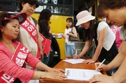 '시각장애인의 살아남을 권리를 지키기 위한 부모 모임'은 7월 말까지 인터넷 등을 통해 '시각장애인 살리기 천만명 서명운동'을 펼치고 있다. 이 모임이 13일 서울맹학교 정문 앞에서 헌재의 판결을 철회할 것을 촉구하는 서명을 받고 있다.