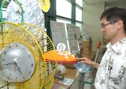 서울시내 초,중,고 학생들의 창의력을 계발하고 탐구심을 길러주기 위하여 열린 서울시학생과학발명품경진대회 입상 작품 138점이 30일까지 서울시과학전시관에서 전시되고 있다. 자원재활용 부문 우수상을 수상한 덕산중학생의 출품작 '선풍기 철망의 리폼'을 관람객이 살펴보고 있다.