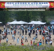 제 24회 '스승의 날'을 기념하여 지역의 교원단체가 주최한 교육자 대회 및 교직원 체육대회가 많은 선생님들이 참여한 가운데 개최되었습니다. 예년같으면 '스승의 날'과는 달리 별도의 일정을 잡아 교육자대회를 개최했으나 올해부터는 '스승의 날' 괜한 오해를 받기보다는 차라리 휴업을 하고 선생님들끼리 친목을 다지는 것이 좋겠다는 의견을 받아들인 결과입니다. 간단한 기념식을 갖고 곧바로 각 학교급별로 나눠 배구경기를 시작했습니다. 선수로 출전한 선생님이나 응원나온 선생님이나 오늘 하루는 교육현장에서 받았던 스트레스를 마음껏 해소하고 서로간에 우의를 다지는 즐거운 시간이 되었습니다.