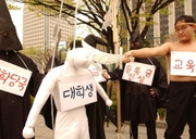 민주노동당 서울시당 학생위원회는 26일 광화문 정부종합청사 앞에서 고리의 학자금대출을 비롯한 교육현안들을 대학과 교육당국이 책임질것을 요구 하며 퍼포먼스와 기자회견을 가졌다.