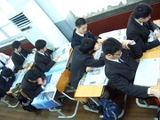 오늘 수업은 교과서를 대신하여 각자 집에서 가져온 신문으로 대신하였습니다. 신문에는 최신 정보가 가득하고 특히 논쟁의 소지를 안고 있는 기사가 있어 대입 논술에서 요구하는 사고력과 표현력을 기르는데 적합하답니다. 아이들도 딱딱한 교과서에서 벗어나 신문을 통하여 다양한 내용을 접할 수 있어 무척 흥미있어 하는 것 같았습니다. 자신이 의미있게 본 기사를 오려서 노트에 부치고 그 밑에 자신의 생각을 간략하게 정리하는 모습이 무척 진지했답니다.