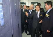 2일부터 완전 개통된 NEIS 교무업무시스템 개통식이 14일 서울시교육청 교육정보센터에서 열렸다. 김진표 교육부장관을 비롯한 공정택 서울시교육감 등이 그룸DB 서버 등을 둘러 보고 있다.