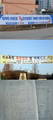 개학과 함께 폭력없는 학교만들기를 위한 노력이 연일 이어지고 있습니다. 최근 사회적으로 문제가 되고 있는 '왕따 현상'과 '교내 폭력'을 차제에 학교에서 영원히 추방하자는 공감대가 광범위하게 형성되면서 적극적으로 추진되고 있습니다. 교내 곳곳에 현수막이 걸리고 학생들의 서명도 받고 있으며, 관내 경찰서의 협조를 받아 범죄 예방 교육도 실시하고 있습니다. 학부모들의 관심과 성원도 무척 높습니다. 자녀들이 학교에서 안심하고 학업에 전념할 수 있도록 분위기를 조성하는 선생님들의 노고에 고마움을 표시하는 분들도 있어서 더욱 힘이 납니다.