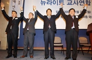 반(反) 전국교직원노동조합(전교조)을 지향하는 뉴라이트 교사연합이 발족됐다. 뉴라이트교사연합 창립준비위원회는 23일 오후 2시 서울 프레스센터 20층 국제회의실에서 회원 520여명이 참석한 가운데 창립대회를 갖고 전국중등교사회 두영택(남성중학교 교사) 회장을 상임대표로 선출했다. 뉴라이트교사연합은 "전교조가 교단에 막강한 영향력을 행사하며 교육은 평등주의의 포로가 됐다"며 "전교조와 교육당국에 교육 현실을 맡길 수 없어 출범하게 됐다"고 단체 결성 취지를 밝혔다. 이 단체는 정강정책에서 자유경쟁 교육이 기본 이념임을 밝히고 교과서 전면 검토작업, 교원평가제 수용, 학생의 학교 선택권 보장에 노력하겠다고 밝혔다. 뉴라이트교사연합은 앞으로 교육현장에서 자유민주주의와 시장경제에 입각, '바른 가치관 운동'을 전개하는 한편 공익ㆍ시민운동도 전개할 계획이다. 이명준 대변인(중경고교 교사)은 "붕괴돼 가는 우리나라 교육을 살리기 위해 공익적 목적의 활동에 주력하는 등 바른 교육을 실천하기 위해 노력할 것"이라며 "우리 교육이 총체적 위기에 직면해 있는 것은 정부의 획일적 교육정책과 이익집단화돼 있는 전교조의 전횡 및 이념 편향성 때문"이라고 주장했다. 그는 "뉴라이트교사연합은 정치적 목적이 없고 교사들의 이익과 실리에 집착하는 모임도 아니지만 앞으로 전교조를 대체할 조직으로 성장하는 것을 목표로 하고 있다"고 덧붙였다. 창립대회에 참가한 김진홍 뉴라이트 전국연합 상임의장은 격려사에서 "학교를 개혁하려면 선생을 개혁 대상이 아니라 주체로 삼아야 한다"며 정부의 교육개혁 정책을 비판했다. 창립대회에는 한나라당 박근혜 대표, 최근 국민중심당을 창당한 심대평 충남도지사, 이명박 서울시장, 손학규 경기도지사 등 정치인 다수가 참석해 이 단체의 출범을 축하했다.