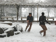 그야말로 폭포수처럼 쏟아지는 눈으로 인해 일부 지방에서는 피해가 속출하고 있으나 아이들은 마냥 즐거운 모양입니다. 내린 눈이 5cm가 넘게 쌓여 흰 빛 일색으로 변해버린 교정에는 눈싸움을 하는 아이들과 함께 눈사람을 만드는 아이들도 눈에 띄었습니다. 특히 행정실에서 학사업무를 보조하고 있는 아가씨도 멋진 눈사람을 만드는 데 합세하였습니다. 눈을 굴려 적당한 크기가 되면 이층으로 쌓아 전체적인 형태를 만들고, 나무나 돌을 이용하여 세부적인 윤곽을 표시하면 사람의 모습이 나타납니다. 눈사람을 만드는 순간만큼은 누구나 동심의 세계로 돌아가는 듯 마냥 즐거워하는 표정이었습니다.