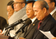 김병묵 대교협회장 , 김성영 한국신학대총장협의회장, 사학 4개단체장 등이 참석한 가운데 7일 국회 기자실에서 사학법 개악에 대한 사학인의 입장 발표를 하고 있다. 여야 합의가 난항을 겪고 있는 가운데 김원기 국회의장의 직권상정이 예상됨에 따라 '사립학교법 개정안 직권상정반대 및 사립학교법 개악저지 국민 총권기대회'를 개최 할 것을 조용기 한국사학법인연합회장이 밝히고 있다.