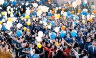 대입 수능시험을 이틀 앞둔 11월 21일 고득점 기원행사가 열린 수원 효원고등학교(교장 김성태) 웅비관 앞에서 3학년 수험생 500여명이 후배들의 격려속에 고득점을 소망하는 글이 담긴 풍선을 하늘높이 날리고 있다. 이번 수능이 '웅비'의 계기가 되길 바라며, '수능 대박'을 기원하며···.