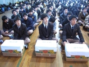 내일 시험을 치르는 3학년 학생들을 위해 오전에 수능 환송회가 열렸습니다. 학부모 대표와 선생님들 그리고 후배들이 참석한 가운데 조촐하게 진행된 수능 환송회는 시종일관 3학년 학생들의 수능대박을 기원하는 간절한 마음으로 30분 동안 계속되었습니다. 특히 1, 2학년 후배들은 십시일반 돈을 모아 3학년 선배들에게 고득점을 기원하는 뜻에서 떡을 마련하여 전달하였습니다. 내일 시험을 치르는 선배들도 후배들이 정성껏 준비한 떡을 먹고 반드시 좋은 점수로서 보답하겠다는 각오를 다졌습니다.