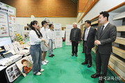 제56회 전국교육자료전에서는 최근 인공지능(AI)의 발전과 함께 도래한 4차산업 혁명 시대를 실감케 할 정도로 지능형 디지털 기술을 접목한 출품작들이 다수 눈에 띄었다. 고교학점제 도입에 따른 ‘최소성취보장제도’(최성보)와 관련해 교육당국의 가이드가 없는 상황에서 학생들을 위해 고생길을 자처한 눈물겨운 노력도 묻어나왔다. ◆말 많고 탈 많은 ‘최성보’ 해결 협력 올해 전면 도입된 고교학점제는 교육 현장에서 많은 논란을 낳고 있다. 특히 가장 골칫거리로 떠오른 것이 바로 ‘최성보’다. 예방·보충지도에 정서지원 프로그램까지 고려해 교사가 직접 고안해야 한다. ‘온통(溫通) S.T.A.R.로 통합사회1 최성보 완성하기’(경기 성포고 김보경·김수인·이민섭)가 그런 노력의 결과물이다. 교육당국에서 내려온 지침도 없어 무에서 유를 창조하는 마음으로 진행했다는 전언이다. 예방·보충지도와 정서지원 프로그램을 정해진 비율(교육부 개선방안에 따라 사실상 자율화로 변경)에 맞춰 치밀하게 제작한 흔적이 엿보였다는 평이다. ◆AI 활용 전 분야에 걸쳐 나타나 AI, 에듀테크 활용도의 다양화가 두드러졌다. 주로 활용되던 수학, 영어, 과학, 사회에서 벗어나 체육, 음악, 미술, 특수교육, 인성·창체 등까지 범위가 거의 전 분야로 늘어났다. 특히 실과 분야 출품작 ‘AI와 농업로봇으로 만드는 교실 속 스마트팜’(경남 안의초 김준호·박귀원·박태민·이치홍)은 초등 교실에서 ‘스마트농업’ 기술을 그대로 구현했다. 자율주행 트랙터, 로봇팔, 드론, 레이저 추적기 등 초등 고학년 실과 수업이라는 설명을 빼면 농업 전공수업 장소를 옮긴 것으로 착각할 정도의 수준으로 제작됐다. 체육 교과에서 AI 기술로 학생의 움직임을 교정할 수 있는 출품작도 관심을 모았다. ◆직접 코딩 배워 ‘한땀한땀’ AIDT 제작 인성·창체 분야의 ‘퍼스털 데이터(D.A.T.A)로 출발하는 시나리오 기반 SDGs 여행’(경기 배다리초 김민혜·이예린·임은영·조은해)은 2015년 유엔이 채택한 글로벌 목표 ‘SDGs’(지속가능발전목표) 관련 교육을 위해 AI디지털교과서 형태의 일대일 맞춤형 교재로 제작됐다. AI융합교육을 연구하던 터에 SDGs 관련 교재가 없어 학생 맞춤형 교육을 준비하다 보니 코딩까지 직접 배워가며 만들게 됐다. 미술 분야의 ‘그림톡 감정을 그리는 AI 상상 WEP/M 플랫폼’(경북 안덕초 이우준)도 소규모학교에서 쉽지 않은 미술 실기교육을 하기 위해 교사가 코딩을 배운 후 다양한 그리기를 익힐 수 있도록 플랫폼을 만들었다. ◆‘기후 위기 극복’ 환경 교육 다양화 전 세계적으로 심화 상황인 기후 위기를 극복하기 위한 교사들의 노력이 곳곳에서 나타났다. 이전에는 인성·창체나 사회 분야에서 한정됐던 환경 교육이 이제 거의 전 교과에서 접목되고 있다. 음악 분야의 ‘두드려봐, 에코비트(Eco-Beat):나만의 친환경 카혼, 젬베 만들기!’(전북 성내초 이은철, 신림초 주창휘)는 공동식수용 20리터 생수통, 종이박스 등의 재활용을 통해 나만의 악기를 만든 후 연주해 보는 수업 자료다. 수학 분야의 ‘도형 싣고 떠나는 수학 기차 여행’(경기 청수초 김나영, 은여울초 하영숙, 금란초 황인준)은 재활용 빨대로 연결부위를 결합해 다양한 도형을 만들어 즐겁게 수학을 학습할 수 있게 하는 등 ‘업사이클’(Upcycle, 단순한 재활용을 넘어 새 제품 등으로 가치를 높여 재탄생시키는 활동)으로 발전시켜 눈길을 끌었다.