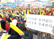 스산한 11월12일 오후 서울역 광장. 전국 선생님들이 모여, 참여정부의 교육실정을 규탄하고 파탄 교육재정을 살리자고 목청을 높였다. 모쪼록 이 날 교원들의 함성으로 참여정부의 교육정책 방향이 편 가르기 정책에 종지부를 찍고 교육여건 개선에 매진하는 시발점이 되기를 바란다. 지난 2년 반 넘게 참여정부가 교육 분야에서 한 일이 뭔가. 사립학교법을 개정하고 교장임용 제도를 다양화하며 교원평가제를 도입한다고 교육계를 온통 쑤석이기만 했다. 이러는 사이 교육재정은 파탄지경이고 학급당 학생 수 등 각종 교육여건 지표는 뒷걸음질 쳤다. 지금 참여정부는 사학재단을 압박하고 교장을 견제해야 학교가 민주화되고 교원평가제가 모든 교육문제를 일거에 해결하는 만병통치약 인양 착각하고 있다. 교육 선진화라는 국가적 명제를 마치 손도 안대고 코풀 듯 해결하려 한다. 수요자 중심 교육이라는 기치아래서 교원이 교육개혁의 대상으로 전락한 게 어제 오늘의 일이 아니지만 참여정부 들어 더욱 노골화하고 있다. 참여정부는 인터넷 과외, 방과 후 학교 등 편법에 매달리고 교원평가제로 국민을 호도하고 있다. 예나 지금이나 교원들의 요구는 한결같다. OECD 수준으로 교육여건을 개선해달라는 것이다. 이제 국민들은 교육여건이 OECD 국가 중 꼴지라도 성적은 OECD 우등생이라는 비과학적 환상에서 벗어나야 한다. 교육여건 지표는 객관적인데 비해 성적 지표는 극히 일부 학생들을 표집한 것에 지나지 않는다는 사실을 받아들여야 한다. 콩 심은데 콩 나고 팥 심은 데 팥 나는 법이다. 조기유학 러시, 기러기아빠가 왜 사회 문제가 되는지 돌아봐야 한다. 교육의 국가경쟁력을 키우기 위해, 미래 세대의 행복을 위해 정부와 정치권, 기업, 교원, 학부모가 허리띠를 졸라매고 교육재정을 확충해 교육여건을 개선하는 데 힘을 모아야 한다.