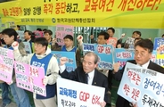 부도위기에 놓인 교육재정 확보를 위해 전국 최초로 교육감과 교육위 의장, 교육단체, 시민단체 등으로 구성된 ‘교육재정 살리기 서울운동본부’(공동대표 공정택 서울시교육감·김귀식 서울시교육위 의장·홍태식 서울교총 회장·정진화 전교조 서울지부장·서태식 한교조 서울 본부장, 이하 서울운동본부)가 창립됐다. 교육재정확보와 교육여건 개선을 위해 교육·시민사회단체로 구성된 ‘경기도 교육여건 개선을 위한 도민운동본부’와 ‘교육경비 보조에 관한 조례제정을 위한 부산 운동본부’가 창립됐지만 서울시교육감과 교육위원회까지 참여하는 건 서울이 처음이다. 서울운동본부는 3일 서울시교육청에서 기자회견을 갖고 “정부의 교육에 대한 부실하고 인색한 투자로 우리나라 교육환경은 OECD 국가 중 최하위 수준”이라며 “공교육 정상화를 위해서는 노무현 대통령과 여당에서 약속한 교육재정 G에 대비 6% 확보가 필수적”이라고 했다. 서울운동본부는 또 “2003년 728억원, 2004년 6천억원이었던 16개 시·도교육청의 지방채발행액이 2005년에는 2조원을 초과하는 등 초·중등교육은 대한민국 건국 이래 최대의 위기에 놓여있다”고 지적했다. 이어 “더구나 2006년 정부예산안을 보면 지방교육재정교부금은 2005년에 비해 약 1조 1000억원이 증액되지만 교원인건비 상승예정액 1조 8000억원에는 크게 부족하고, 경기침체로 인해 지방교육세 등이 감소할 것으로 보여 내년 교육재정은 더욱 악화 될 것으로 보인다”고 했다. 아울러 서울운동본부는 “OECD 국가 중 최하위인 현재 수준의 학급당 학생수, 교사 1인당 학생수를 유지하는 데만 2005년 기준으로 약 5조원의 예산이 부족하며, 여기에 부족교원확보, 유아교육공교육화, 급식시설 개선 등을 개선하려면 한 해 최소한 2조원 이상이 추가로 필요하다”면서 “범정부 차원의 특단의 대책이 요구된다”고 밝혔다. 서울운동본부는 국민들에게 부도위기에 몰린 초·중등교육재정의 실상을 알리고 지방교육재정교부금법의 올바른 재개정을 위한 입법청원활동을 벌인다는 방침이다. 서울운동본부 참여단체는 서울시교육위원회, 서울시교육청, 서울교총, 전교조 서울지부, 한교조 서울본부, 참교육학부모회 서울지부, 학교급식전국네트워크, 서울교육혁신연대, 학사모 서울지부, 자유주의교육운동연합, 서울교육공동체시민연합 등 11개 단체다. 서울운동본부의 실무위원장을 맡은 김홍렬 서울시교육위원은 “그동안 교육감들이 교육재정 확보에 대해 소극적이라는 비판을 받아왔지만 공 교육감의 참여로 운동본부의 활동에 힘이 실릴 것으로 보인다"라면서 “교육감도 교육재정 상황이 심각하다는 것을 절실히 느끼고 있는 것”이라고 말했다. 그는 앞으로의 활동에 대해 “우선 각 시·도의 교육재정확보 운동 관련 단체와 연계해 활동 해 나갈 것”이라며 “지방교육재정교부금법 재개정은 국민들로부터 청원서명을 받아서라도 추진할 계획이다”라고 말했다.