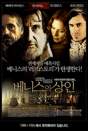 고전이란 누구나 내용은 알지만 읽어보지는 않는 작품이라고 했던가? 셰익스피어 작품을 영화화한 은 원작을 읽어보지 않았더라도 내용은 대충 안다. 대중에게 너무나 잘 알려진 고리대금업자의 대명사인 샤일록에게‘1파운드의 살점을 가져가되 피는 한 방울도 흘려서는 안 된다’는 명판결로 정의를 실현한다는 내용이다. 이 이야기는 일반적으로 악덕 고리대금업자의 지나친 욕심 때문에, 억울하게 죽을 위기에 처한 남자를 살려낸 재치있는 판결 정도만으로 알려져 있기에 사건의 배경에 대해 깊이 기억하는 사람은 그다지 많지 않을 듯하다. 때는 1596년, 유럽 해상 무역이 한창이던 시대에 물의 도시 베니스를 배경으로 이야기가 펼쳐진다. 무역으로 인한 금융자본이 몰려든 베니스는 욕망과 사랑, 증오와 분노가 뒤섞여 현장감이 넘치는 도시였다. 봉건시대에서 초기자본주의체제로 진입하던 베니스는 아직 거래원칙을 완전히 체계화하지 못한 관계로 이상과 현실에서 갈등이 일어난다. 베사니오(조셉 파인즈)는 아름답고 부유한 상속녀 포시아(린 콜린스)의 사랑을 얻으려고 절친한 친구 안토니오(제레미 아이언스)에게 도움을 요청한다. 재력가이지만 당장 빌려줄 현금이 없어 난감해하던 유력자 안토니오는 친구 베사니오의 구혼자금을 마련하기 위해 자신을 담보로 하여 돈을 빌리게 한다. 베사니오는 샤일록(알 파치노)에게 돈을 빌리러 간다. 평소에 자신을 증오하고 멸시하여 인간취급도 하지 않던 거상 안토니오가 돈을 빌리러 오자 샤일록은 예리한 분석력으로 앞으로의 사태를 예상하고, 돈을 기한 내에 갚지 못할 경우 심장에서 가장 가까운 부위의 살점 1파운드를 떼어 내 줄 것을 계약 조건으로 내 걸었다. 구혼자금을 마련한 베사니오는 쟁쟁한 경쟁자를 물리치고 사랑하는 여인 포시아의 사랑을 얻는 데는 성공하지만 얼마 지나지 않아 안토니오가 예상치 못한 사고로 파산하게 되어 샤일록에게 목숨을 잃을 처지가 되었다는 소식을 접하게 된다. 이리하여 공방전은 일어나고 재판이 벌어진다. 기회를 잡은 샤일록의 집요하게 계약서대로 1파운드의 살점을 요구함으로써 정점에 달해간다. 더러 약간의 갈등은 있지만 큰 맥락으로 보면 기독교도와 이교도와의 싸움에서 기독교의 일방적 승리를 기념하는 작품이라고 볼 수 있다. 더 넓게 생각하면 아직 충분히 성숙하지 못한 인간에게서 미워할 대상을 하나 찾아 마음껏 두들김으로써 대리만족하려는 인간 본성을 나타내고 있는 작품이라고도 말할 수 있다. 셰익스피어시대에는 기독교 측의 완벽한 승리였다. 그러나 세월이 흐르고 시대가 바뀌다 보니 여기에도 해설이 필요해졌다. 마이클 레드퍼드 감독은 이 문제를 어떻게 해결할 것인가를 고민하여 영화는 첫 장면부터 길게 설명을 붙인다. 유대인이라는 이유로 일몰 후에는 밖으로 나가지도 못하고, 나갈 때는 반드시 빨간 모자를 써야 한다. 안토니오는 샤일록이 기독교도에게선 금지된 고리대금업을 한다는 이유로 얼굴에 침을 뱉고 모욕한다. 이를 통해 샤일록은 생각만큼 그렇게 잔인하고 냉혈적인 인간만은 아니며 반유대주의에 의해 핍박받는 또 한사람의 피해자이기에 처절한 복수심도 근거가 있다는 것을 미리 알리어 샤일록의 주장을 반쯤 정당화 시켜놓고 본 영화가 시작된다. 영화에서 가장 큰 매력을 끄는 인물은 샤일록이다. 샤일록을 연기한 알 파치노는 이 작품 속에서 어느 인물보다 눈길을 끈다. 이교도에서 오는 차별과 딸을 잃은 아버지의 슬픔을 절제된 연기 속에서 강한 분노로 표현한다. ‘소용없는 짓이라도 내 복수심은 채워야지’라며 분노에 찬 눈빛을 번뜩이다가, ‘당신은 나를 개라고 불렀지 않았소. 그러니 내 송곳니를 조심하시오’라는 알파치노의 컬컬하고 강한 목소리는 한순간에 관객을 휘어잡고 자기만의 논리로 상대방을 맞받아치면서 영화에 생명력을 불어 넣는다. 오늘의 관점에서 보면 베니스에서 자본주의의 기본원칙에 제법 충실한 사람이었고, 그 시대라도 ‘유대교의 이론’에서 당연함을 행했음에도 불구하고, 그것 때문에 멸시받고 조롱받고 증오 받았기에 그는 자신이 휘두를 수 있는 유일한 무기인 계약서를 흔들며 대항한다. ‘난 계약대로 하겠다’큰소리치며 가죽 끈에 칼을 갈던 모습은 익숙한 내용임에도 불구하고 긴장감이 감돈다. 그리고는 더욱 당당하게 자신의 논리를 편다. 딸의 가출보다도 돈이 없어짐을 더욱 원통하게 생각하는 그임에도 불구하고 빌려준 돈의 10배의 거액을 준다 해도 거절하며 한 줌의 살점을 요구할 때 모습은 수전노 샤일록에서 혁명가로 변신한다. 그가 아무리 정당한 이론을 펼쳐도 결론은 샤일록의 K.O패로 정해져 있다. 명장면인 재판과정에서 샤일록 쪽으로 잘 진행되다 ‘살은 가져가되 피는 한방울도 흘려서는 안된다’는 말 한마디에 전세는 급변한다. 샤일록은 점점 불리해지고 위기에 몰린다. 그러자 그는 ‘모두들 한통속이군’이라는 말을 던지며 할 수 없이 살점을 도려내는 걸 포기한다. 포기했음에도 불구하고 상대방은 공세를 늦추지 않는다. 교묘한 이론으로, 강자의 지원을 받는 변론으로 