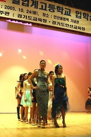 2006학년도 안산지역 실업계 고교 설명회(2005.10.24 올림픽기념관)에 참석하니 쭉쭉 미인들이 시선을 확 끈다. 혹시, 이곳이 미스코리아 선발대회 예선전? 가까이 가서 보니 고등학생이 패션쇼를 위해 분장한 것이다. 대부분 고1, 2학년이고 고3은 딱 1명이다. 딱딱한 학교 홍보, 대부분 주위를 집중시키지 못한다. 그래서 머리를 짜낸 것이 패션쇼다. 학교 동아리를 홍보하면서 중학생들의 시선을 잡으려 하는 것이다. 그런 면에서 안산여자정보고등학교의 패션쇼는 일단 성공하였다. 무대 밖에서 잠시 대기 중인 출연팀을 만났다. 동아리 패션연구부 30명 중 선발된 학생이라 자부심이 대단하다. 도교육청으로부터 300만원 지원금도 받아 활동도 활발하다. 모교 출신 지도교사의 지도에 따라 호흡이 척척 맞는다. 자세히 가서 보니 다 큰 처녀같다. 동아리에서 스스로 모델을 뽑고 메이크업, 머리 손질, 옷 제작도 직접 했다고 한다. 3:1의 경쟁을 뚫고 선발되어서 그런지 얼굴엔 자신감이 넘친다. 학교도 홍보하고 패션계에서 뜨고 싶은 눈빛이 간절히 보인다. 비록 아마추어이지만.