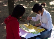 유치원 원생들이 드높은 가을하늘 아래에서 뭔가를 열심히 그림으로 표현하고 있다. 고사리같은 손을 부지런히 움직이는 동심은 무엇을 표현하고자 저리 바삐 손을 놀리는 것일까. 조금의 거짓도 없이 표현되는 그림처럼 그마음이 영원히 지속되었으면 좋겠다는 것이 소망이면 소망이랄까...