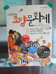 갈수록 줄어드는 대입 수험생으로 인하여 대학마다 신입생 확보에 비상이 걸린 상황에서 각 대학 입시담당자들뿐만 아니라 대학생들도 고등학교를 대상으로 홍보에 나섰다. 대학생들은 입시담당자들처럼 교사나 학생들을 대면하는 등 구체적인 홍보 방법 대신 다양한 자치활동과 학교 축제를 소개하는 역할을 하고 있다. 리포터가 근무하는 학교에도 인근에 소재하고 있는 대학의 축제 포스터가 교내 곳곳에 부착되어 있다. 사실 대학입시 준비로 눈코뜰 사이 없이 바쁜 상황에서 대학 축제 포스터에 눈길을 보내기는 쉽지 않다. 학생들이 가장 많이 오가는 길목에 부착된 포스터의 내용을 살펴보았다. 시각적으로도 무척 화려하고 청소년들의 호기심을 끌 만한 내용이었다. 물론 이 포스터를 부착한 대학생들도 고등학생들이 자신들의 축제에 참여하기를 바라지는 않았을 것이다. 또 고등학생들이 그럴만한 시간이 없다는 것은 누구보다도 자신들이 잘 알 것이다. 다만 이와같은 축제 포스터를 통하여 자신들의 학교에 더 많은 학생이 지원해 주기를 바라는 마음이 담겨 있다고 보면 틀림없을 것이다.