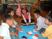 참 재미있어 보이죠? 우리 반의 수학 공부 시간이어요. 두 수의 크기를 비교하는 1학년 수학 시간이랍니다. 두 사람이 숫자 카드로 재미있는 놀이를 하다가 네 명이 함께 하니 더 즐겁습니다. 곁에서 보고 있던 2학년 나라도 같이 하고 싶어 합니다. 나라는 작년에도 혼자였으니 같이 놀이를 할 친구가 없었습니다. 자기 공부를 얼른 마치고 같이 어울리니 더 재미있어 하는 아이들 모습. 화투 놀이가 아니라 숫자 카드를 다섯 벌 만들어서 잘 섞은 다음, 가위 바위 보로 순서를 정합니다. 그 다음 두 장의 카드를 뽑아서 만든 숫자가 가장 큰 사람이 이깁니다. 규칙을 바꾸어서 가장 작은 숫자를 만들 수도 있고 두 번째 큰 수를 만들 수도 있습니다. 책으로만 공부하면 힘들어 하다가도 놀이를 시키면 즐거워 합니다. 많이 이긴 사람은에게는포인트까지 주면 더욱 즐거워 합니다. 수학 공부도 이렇게 놀이처럼 날마다 할 수 있다면 참 좋겠죠? 날마다 이렇게 재미만으로 공부를 할 수 없다는 것을 아이들이 깨달아 가기를 바랍니다. 점점 어려워지는 공부를 포기하지 않고 자신을 이겨가는 진짜 공부까지 잘 하는 아이들이 되어야겠지요?
