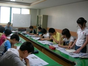 "이까짓 무더위, 신문토론 학습 열기로 물리칩니다." 리포터가 근무하는 학교에서는 방학동안 신문토론반을 운영하고 있는데 자못 그 열기가 뜨겁다. 무더위를 2대의 선풍기로 식히지만 참가한 2학년 학생들의 반응이 좋다. 그 이유를 중간 점검하여 보니, 신문을 가까이 하게 되어, 발표력이 늘어, 학업에 자신감이 생겨, 친구들과 생각을 주고 받을 수 있어서, 신문 기사 내용이 풍부하여... 등 다양한 의견이 나온다. 리포터는 신문기사 읽고 요약 발표하기, 신문 기사에 자기 생각 넣어 발표하기 등 초반부에는 논술의 기초를 다루고 있다. 그때그때 시사적인 것도 수업에 활용하는데 '개똥녀와 방귀남' 사건에 대해서는 발표가 더욱 활발하다. 후반부에는 기사 분석법, 기사 작성법, 취재방법 등의 실전 분야도 다루려 한다. 7월 18일부터 29일까지 10일간 하루 2시간 씩 20시간을 운영(수강료 없음)하고 있는데 학생들의 반짝이는 눈빛과 진지한 토론 내용을 들으면 그들의 사고(思考)가 성장하는 것이 눈에 보인다. 교육의 보람, 바로 이런 것이 아닐까?