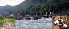 지난 주 전일제 특별활동일에 우리 학교 과학동아리는 우리 고장 충북 진천에 있는 ‘농다리’ 탐사에 나섰다. 줄자로 다리 규모도 재어보고, 요리조리 쌓아올린 바위 하나하나를 꼼꼼히 탐구하며 조상들의 놀라운 지혜를 배워보는 학생들의 손길과 눈빛이 자못 진지하다. '籠다리'는 충북 진천군 문백면 구곡리의 세금천에 놓여 있는데 고려 때 축조한 것으로 추정되나 정확한 축조 연대는 알 수 없다. 돌과 자갈 등 자연석을 이용하여 축대를 쌓듯이 둘레 2.5미터, 높이 2미터 가량 지네의 발 모양으로 쌓아 올려 놓았는데, 아무리 큰물이 나도 좀처럼 무너지지 않고 천 년을 버티고 있는 것이 신기하기만 하다. ‘농다리’의 ‘농’은 한자 ‘籠’으로서 ‘농독, 농돌, 농바우, 농여’ 등에서 보듯 지명의 선행 요소로 아주 적극적으로 쓰인다. 따라서 농 궤짝을 쌓아 올리거나 농짝처럼 포개져 있는 듯한 형상의 地物을 ‘농’을 이용하여 표현한 것이다. 그리하여 ‘농다리’는 ‘농 궤짝을 쌓아 올리듯 돌을 차곡차곡 쌓아 올린 다리’로 해석된다. 진지하게 탐구하는 이 아이들 중에서 미래의 위대한 교량 건축가가 탄생하기를 기원한다.