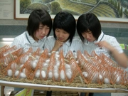 다 자란 5령의 익은 누에가 뽕먹기를 멈추고 머리를 이리저리 저으며 열심히 실을 토해내고 둥그렇게 누에고치를 짓는 것이 신비롭기만 합니다. "누에의 한살이 특별전시회"가 열리고 있는 농촌진흥청 농업과학관을 방문한 화홍고등학교 2학년 여학생들의 시선이 유달리 여기에서 오래 머뭅니다. 고작 49일을 살면서도 많은 것을 알려주는 신비의 곤충 누에! 누에의 생활사는 번데기->나방->알낳기->월년란->알까기->1령->2령->3령->4령->5령->누에 올리기->누에고치로 이어지는데 이 모든 것을 여기서 볼 수 있습니다. 오늘 방문은 누에의 신비로운 일생을 직접 관찰하고 체험한 소중한 기회였다고 봅니다. 이 전시회는 7월 20일까지 열립니다.