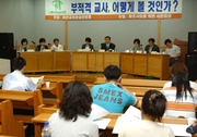 바른교육권실천행동이 21일 서울 서대문 4․19기념회관에서 개최한 ‘부적격 교사, 평가 어떻게 할 것인가’ 토론회에서 발제를 맡은 황영남 인천 삼량고 교감은 “부적격 교사를 판별하는 도구로 현행 근평제를 개선해 사용하는 방법이 최선”이라고 밝혔다. 그는 부적격 교사를 ‘직무수행을 위한 전문적 소양과 자질이 부족한 교사’로 정의하면서도 “명백한 비리, 비위 교사에 대한 징계 강화는 논외로 하고 여기서는 그 외의 부적격 교사를 판별하는 게 문제”라며 논의의 폭을 좁혔다. 황 교감은 “이런 부적격 교사 판별을 위해서는 직무 분석과 수행기준 및 교사 자질 설정 등에 대한 국가 차원의 장기적 연구가 필요하겠지만 우선 현실적인 부적격 교사 문제를 해결하기 위해서는 현행 근평제를 개선해 활용해야 한다”고 주장했다. 그는 “현행 근평에서는 ‘양’을 받으면 해당 교사가 6개월간 승급되지 않는 불이익을 받지만 온정주의와 평가자인 교장, 교감에 대한 시비 부담으로 유명무실하다”며 “결국 현행 근평제를 이용하되 부적격 교사에게 ‘양’을 줄 수 있는 방안을 모색하는 것이 효과적이고 실용적”이라고 밝혔다. 단 “현행 근평에서는 양을 10%나 강제 배분하도록 돼 있는데 이를 3~5% 내로 낮춰 부담을 줄여야 한다”고 강조했다. 황 교감은 근평제를 판별도구로 활용하되 그 전제조건으로 “교장, 교감에 의한 일방적 평가방식을 수정해 평가자에 교사대표와 학부모대표를 포함시켜 평가 결과에 대한 책임을 공동을 지게 함으로써 양을 주어 생기는 갈등도 예방하자”고 제안했다. 또 “단위학교에 교원평가위원회를 두고 평가를 관장하게 함으로써 공정성과 신뢰성을 확보하고 평정내용에 따라 학부모 대표의 참여여부를 결정케 하는 등 평가위의 자율성도 높여야 한다”고 덧붙였다. 이어 개선된 근평을 통해 ‘양’을 받은 교사는 경중에 따라 처리하는 방안을 내놨다. 황 교감은 “근평에서 1회 양을 받은 교사는 특히 낮은 평가가 나온 평정영역에 대해 자율연수 기회를 갖도록 하고 2회 연속 양을 받을 경우는 교원평가위가 필요한 연수를 지정해 이수를 의무화하며 3회 연속 양을 받았을 때는 행정직 전환이나 퇴출 중 본인이 선택하도록 해야 한다”고 제안했다.