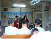 “치매 걸린 우리 할머니가 미웠었는데, 엉뚱한 말을 많이 하거든요. 그런데 여기서 불쌍한 할머니 할아버지를 만나니까 제가 잘못했다는 생각이 들었어요. 다음부터는 잘 해드려야겠어요.” 학년 초에 윤리부장이 “우리 학교에서도 복지시설과 결연을 맺어 무너져가는 효의 사상을 일깨우고, 불쌍한 이웃을 사랑하는 마음을 길러서 현대의 물질 만능주의 부당성을 깨닫고, 핵가족으로 인한 부족한 공동체의식을 함양시켜 바른 정서를 순화시키고 아름다운 인성을 길러 봅시다.”라며 ‘노인 복지 시설 평강의 집’과의 결연을 발표하였다. 드디어 6월 11일 토요일, 5학년인 우리 반 학생들은 '평강의 집‘을 찾았다. 학교에서 차량으로 7분 정도의 가까운 곳 이었다. 보통의 살림집 보다 조금 더 큰 집이었다. 25명의 노인들이 살기에는 무척 좁아 보였다. 마당이라야 10평 정도였다. 재래식 마루가 있고 이동식 평상이 있어 바깥 바람을 쐴 수 있겠지만 너무 비좁아 보였다. 10평 남짓한 방에는 예배를 볼 수 있는 단상이 있고 긴 의자가 몇 개 있었지만 너무 좁았다. 우리 학생들이 들어가자 마자 “고맙다. 오늘을 많이 기다렸단다.” 한 할머니께서 무척이나 반갑게 학생들 손을 잡는다. “1년에 연례적으로 한두 번 오는 사람들은 있지만 이렇게 매달 와 주니까 뭐라고 감사의 말씀을 드려야 할지…….” 원장님께서 너무 고맙다는 말씀을 하셨다. 드디어, 학생들 스스로 준비한 위문 공연을 시작했다. 반을 대표해서 학급회장이 사회를 보았다. 무대도 비좁고 마이크 장치도 없어 귀가 어둔 할머니들에게 잘 들리지 않아 무척 아쉬움이 많았다. 그러나 시작할 때 끝날 때 치는 박수 소리는 너무도 우렁차게 들렸다. 기뻐하시는 모습들이 천진한 어린 꼬마 같았다. 한복을 입고 ‘어머나’를 신나게 부르는 학생과 함께 따라 부르기도 하시고 마술쇼에서는 큰 박수로 답례도 해주셨다. 마지막 순서에는 우리 반 모두가 ‘또 하나의 열매를 바라시며’라는 곡으로 합창을 할 때 몇 명의 할머니께서 눈물을 흘리는 모습을 볼 수가 있었다. 그 모습을 본 학생들도 같이 눈시울이 적시고 있었다. 처음 만남이지만 친할머니처럼, 친손자처럼 서로에게 마음에 감동이 일어남을 느낄 수 있었다. ‘안마해드리며 이야기 나누기’시간이 되었다. 어린 꼬마 손들이 할머니 할아버지의 어깨를 주물러 드렸다. “아이구 시원하다. 나도 너 같은 손녀가 있으면 얼마나 좋을까! ” “할머니, 식구들은 없어요?” 둘 사이엔 정다운 이야기가 오고 갔다. “얘들아, 6월에는 우리 반이 ‘평강의 집’위문 봉사활동을 가게 된다. 어떻게 할지 학급회의에서 토론하고 결정했으면 좋겠다.”“선생님 저희들끼리 할테니까 나가 계세요.”5학년, 아직은 어리지만 맡겨 두기로 했다. 학생들의 적극적인 참여로 12가지의 프로그램을 준비하였다. 생각보다 많았다. 참으로 기특하다는 생각이 들었다. 라면, 초코파이, 과자, 화장지, 감자, 비누, 치약, 칫솔, 수박, 토마토, 사탕 등 많은 위문품도 준비하였다. 아마도 매달 위문 봉사활동이 이루어지기 때문에 이미 다녀온 학생들에게 듣고 준비를 더욱 잘 한 것 같았다. 금년 3월, 이 학교에 부임하여 한동안 ‘아이들이 시골에 사는데도 왜 이렇게 시골 어린이답지 않을까!’ 라고 생각할 만큼 자기중심적인 면을 볼 수 있었다. 그런데 지금 우리 애들이 너무 자랑스럽다. “합창을 할 때 너무 슬펐어요. 할머니 할아버지께서 울고 계셔서 눈물이 났어요. 좀더 함께 있고 싶었는데.” “정말 안쓰러웠어요. 우리 보다 못살고 가난하고 자식도 없고 ……. 정말 불쌍했어요.” “ 애들이 내 손자라면 좋겠네. 선생님, 정말 고맙습니다.” 이미 깊어 질대로 깊어진 주름, 마른 장작 같은 거친 손으로 내 손을 잡을 때 눈시울이 뜨거워졌다.