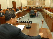 16일 '교육관련정보의 공개에 관한 법률안(이주호의원 대표발의)에 관한 공청회'에서 열린우리당의원의 불참으로 인해 황우여(한나라당) 교육위원장이 정회를 선포하고 있다.