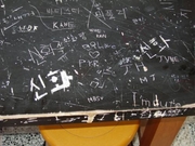 우리 학생들 중에서 시급히, 반드시 고쳐야 할 것 하나! 바로 낙서. 특히, 학년반 구분 없이 공용으로 사용하는 과학실, 음악실, 미술실, 가사실, 컴퓨터실, 기술실, 도서실 등의 책상에 씌여진 낙서를 보면 '이것 정말 큰일 났구나!'하는 생각을 하게 됩니다. 그 정도가 한계를 넘어선 것이지요. 좋아하는 이성 친구 이름, 가수 이름, 하트 표시, 영문 이니셜 표시 등 내용도 다양합니다. 그런데 사용한 필기구 글씨가 잘 지워지지 않습니다. 리포터가 방문한 모 중학교 과학실 검은 목제 책상은 아예 칼로 파서 판 전체를 갈아야 할 지경입니다. 이것이 우리 학생들의 공공물 애호 실태 현주소입니다. 지금 공중화장실의 낙서도 이 정도는 아니겠지요. 학생 여러분, 도대체 이게 뭡니까?