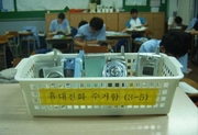 휴대폰 보급이 일반화되면서 학교에서도 골칫거리로 떠올랐습니다. 특히 선생님들의 통제가 미치지 않는 자율학습시간은 수시로 울려대는 휴대폰 벨소리와 진동 소음으로 인하여 면학분위기를 해치는 일이 자주 일어납니다. 이처럼 애물단지로 전락한 휴대폰 문제로 고민하던 차에 선생님 몇 분이 아이디어를 내서 자율학습 시간만큼은 정숙한 분위기를 유지하기 위해 휴대폰을 담을 수 있는 바구니를 교탁에 비치하기로 했습니다. 휴대폰으로 인한 폐해를 절감하고 있던 아이들도 선생님들의 아이디어에 적극 동참했습니다. 자율학습이 시작되면 각자 휴대폰을 꺼내 바구니에 담아놓고 자리에 앉는 습관이 생기면서 면학분위기는 전보다 훨씬 나아졌습니다.