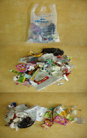 해도 해도 정말 너무 하는군요? 이것이 학교에서 10분 사이에 주운 쓰레기라면 믿으시겠어요? 3일(금) 5교시 수업시간 중 우리 학교 1층에서 5층까지 다니면서 복도와 계단, 창틀 등 눈에 띄는 쓰레기를 직접 주운 것입니다. 20리터 쓰레기 봉투에 담으니 반 정도 분량이 차네요.(위 사진) 이것을 쏟아놓으니 분량이 엄청납니다.(가운데 사진) 이 쓰레기를 분류하여 보니 휴지류와 군것질 한 것 껍질, 기타로 나눌 수 있네요.(아래 사진) 우선, 선생님들의 학생 생활지도가 미흡하고... 가정에서의 자녀교육이 제대로 안 되어 버리지 않기와 쓰레기는 지정된 곳에 버리기 등 기본 생활이 형성이 안 되어 있음을 알 수 있습니다. '집에서 새는 바가지 밖에서도 샌다'는 말 있죠. 어찌하면 좋을까요? 혹시, 이런 것부터 교육이 무너져 내리는 것은 아닐까요? 하필 그날 그 시간만 그렇게 많이 나왔다면 별 문제가 되지 않지만... 평상 시 그렇다면, 이것은 큰일입니다. 지도대책이 시급합니다.