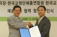 윤종건 교총 회장과 김명곤 국립극장 극장장은 23일 장충동 국립극장 회의실에서 예술교육 협력 협정 조인식을 가졌다. 양 단체는 전국 초·중등 교원이 국립극장 자체 제작 공연을 관람할 경우 관람료의 50%를 할인해주기로 합의했다. 김명곤 국립극장 극장장은 “국립극장을 전통적인 공연을 하는 중·장년층 전용으로 인식하는 경향이 있지만 우리 극장은 2000년부터 어린이 국악이나 창극, 남산문화탐방 프로그램 등 어린이와 청소년들을 위한 공연을 개발하기 위해 많이 노력해왔다”면서 “학생들이 어릴 때부터 학교를 통해 이처럼 다양한 문화예술 공연을 체험할 수 있어야 한다”고 강조했다. 김 극장장은 “교총과의 이번 협정을 통해 국립극장이 추진하던 사업도 탄력을 받고 교육현장과 연계된 실질적인 공연예술 프로그램도 개발될 수 있을 것”이라고 전망했다. 윤종건 교총 회장도 “한국교총과 국립극장의 예술교육 협력은 진작 이뤄졌어야 할 행사”라면서 “선생님들이 잘 알아야 학생들에게 문화예술을 가르치고 보급할 수 있는데 시간이나 여러 여건상의 이유로 선생님들에 대한 이러한 배려가 부족했다”고 지적했다. 윤 회장은 “이번 기회를 통해 청소년 교육이 활성화될 것을 믿는다”며 “국악을 활성화시키고 교육을 통해 우리 국악을 어떻게 발전시킬 수 있을지를 생각하는 계기가 됐으면 한다”고 밝혔다. 양 단체는 이외에도 남산문화탐방 등 유치원과 초·중·고 학생들을 대상으로 한 프로그램을 지속적으로 개발·운영하고 각급 학교를 찾아가는 예술교육 프로그램, 교직원 대상 교육프로그램도 개발하기로 합의했다. 또한 국립극장은 학교 현장의 요청이 있을 경우 예술 전문인력 일일 강사 파견도 적극적으로 협조키로 했다.