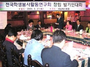 전국학생봉사활동연구회 창립 발기인 대회가 21일 서울 세실레스토랑에서 있었다. 서울, 인천, 경기도에서 모인 학생봉사활동 지도 전문가 20여명은 학생봉사활동의 문제점과 개선 방안에 대해 심도 있는 토의를 하고 전국 단위의 모임 결성에 공감하여 연구회 정관을 심의하고 창립발기문을 채택하였다. 이날 창립준비위원장에 선출된 권택희 서울 동작교육청 교육장은 “오는 6월말 창립 총회를 계획하고 있는데 앞으로 봉사활동 직무연수, 봉사활동 연구발표대회, 봉사동아리 대회 등을 추진할 것”이라고 밝혔다. 발기인 대회를 준비한 양기황 교장(서울 中岩中)은 “정체성이 뚜렷한 순수 모임으로 한국청소년자원봉사센터, 청소년위원회, 교육부와 긴밀한 협조 체제를 유지해 나갈 것이며, 회원수 확보보다는 이론과 실천을 겸비한 지도자 영입에 주력하여 기존 단체와는 차별화된 활동을 전개할 계획”이라고 말했다. 본회가 정식으로 창립되어 모임이 활성화되면 전국 단위로 학생봉사활동 운영상의 문제점 진단 및 정책적 대안 제시, 봉사활동에 대한 학부모․학생․교사연수, 홍보강화, 다양한 프로그램 개발․보급, 봉사활동에 대한 정보제공, 유관기관과의 긴밀한 유대관계를 통한 학생봉사활동의 조직적․체계적 운영으로 다양한 체험과 실천위주의 인성함양을 통한 교육목표 달성에 기여할 것으로 전망된다.