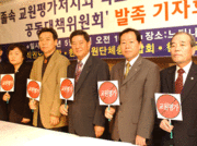 한국교총(회장 윤종건)을 비롯한 전교조와 한교조 등 교원3단체가 함께한 가운데 18일 안국동 느티나무 까페에서 "졸속 교원평가 저지와 학교교육 정상화를 위한 공동대책위원회" 발족기자회견을 가졌다.