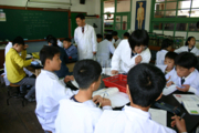 충남 보령 미산중학교(교장 김성삼)에서는 보령교육청 컨설턴트 공개수업이 있었다. 미산중학교는 충남에서 제일작은 전교생이 50명도 되지않는 초 미니학교다. 학생모두가 실험복으로 갈아입고 실험에 임하는 모습이 무척이나 진지했다. 선생님 또한 수업준비를 많이해 탐구학습, 협동학습의 좋은 모델이라는것이 이날 참석했던 선생님들의 의견이었다. 많은것을 배우고 느낀 좋은 시간이었다.