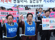 한국교총(회장 윤종건)은 4일 일본 대사관앞에서 일본의 역사교과서 왜곡을 규탄하는 집회를 가졌다.