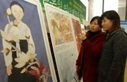 국회도서관(관장 배용수)은 광복60주년을 기념해 국회의원 연구모임, 시민단체와 공동으로 27일까지 관내 2층에서 ‘소리 없는 전쟁, 일본의 역사왜곡을 말한다'라는 제목으로 ‘일본 역사왜곡 전시회’를 개최하고 있다. 관람객들이 위안부 피해자이자, 그림을 통해 일본군 위안부 실상을 전 세계에 알렸던 故 김순덕 할머니의 그림 ‘못다핀 꽃’(1995)을 보고 있다.