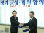 전남교총(회장 박용국)과 도교육청(교육감 김장환)은 15일 교육청 상황실에서 ‘2004 정기 교섭·협의회’를 열고 실업계 고교 발전 및 교원의 근무여건 개선 등 47개 조항을 담은 합의서에 조인했다. 양측은 지난해 11월 16일 요구안을 접수한 이후 3차례에 걸친 실무자 협의 및 교섭 실무위원회를 가져왔다. 양측은 합의를 통해 무주택 교원의 주택전세자금 수혜를 확대하도록 하고 실업계고의 학급당 정원을 시지역은 30명 이하, 읍·면 지역은 25명 이하로 연차적으로 축소 조정키로 했다. 또 올해부터 스승의 날 기념식 및 교육주간 행사를 공동주관으로 지역교육청별로 개최할 수 있도록 권장하고 승진 후보자 증빙서류 제출시 업무 경감 차원의 전산화를 시행키로 했다. 아울러 정년퇴직 예정 교사의 경우 3개월간 퇴직준비휴가를 할 수 있도록 권장하고 과학영재교실을 지역공동영재학급으로 전환 운영할 수 있도록 추진하기로 했다. 이밖에 ▲야외교육활동 지도교사 여비 지급 ▲교원 자율연수비 지원 확대 ▲내 고장 학교 보내기 활성화 대책 강구 ▲체육코치 수당 현실화 ▲지역교육청별 1개원 이상 단설유치원 설립 등을 위해 노력하기로 합의했다.