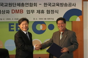 한국교총과 EBS는 지난 4일 지상파 DMB 사업추진을 위한 업무 제휴 협정서 조인식을 갖고 양해각서를 교환했다. 이에 따라 지상파 DMB 사업권을 획득하면 EBS는 교총이 제공하는 교사연수, 교육관련 정보 등을 DMB 채널을 통해 일정 시간대에 방송하게 된다. 지상파 DMB 사업자로 선정되지 않을 경우에도 제공 콘텐츠는 EBS TV와 라디오를 통해 방송된다. EBS는 교총 외에 연합뉴스와 한국영상자료원, 방송통신대, NHN, 경향신문, 인크루트, 잡링크 등과도 협정을 맺고 각종 뉴스와 교육정보, 콘텐츠 등을 공유하기로 했다. 한편, 14일에는 언론 관련학과 교수들로 구성된 한국언론학회 회원들이 EBS를 방문, 관계자들과 간담회를 가졌다. EBS측은 이 자리를 통해 “교육콘텐츠가 주축이 되는 EBS 지상파 DMB의 경우, 상업·오락 프로그램에 비해 상대적으로 훨씬 적은 수준의 제작비로도 운영이 가능하다”고 밝혔다.