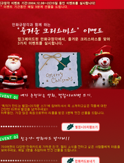 국내 유일의 종합만화데이터베이스 만화규장각(www.kcomics.net)에서는 크리스마스를 맞아 2004년 21일(화)까지 3가지 이벤트를 실시한다. ‘내가 추천하는 만화, 별점+20자평 쓰기’는 만화규장각의 ‘별점+20자평 쓰기’코너 참여로 이루어진다. 만화작품에 대해 다양한 의견과 평가를 한눈에 보여줄 ‘별점+20자평 쓰기’는 독자들에게 훌륭한 가이드역할을 해줄 것으로 기대되고 있다. ‘친구야 만화카드 받아라!!’는 만화규장각의 ‘페니와 머기가 함께하는 만화카드’ 이용으로 진행된다. 관록의 원로작가부터 톡톡 튀는 신인작가까지, 89명의 작가들이 그린 700여편의 만화카드가 선보인다. 마지막으로 ‘설문조사! 만화규장각 회원이 뽑는 2004년 만화계 10대 뉴스’는 만화규장각의 투표 참여로 이루어진다. 엄선된 ‘2004년도 만화계 주요뉴스’ 20건 중, 참여회원들이 ‘2004년 만화계의 10대 뉴스’를 뽑게 된다. 이벤트 참여 방법은 만화규장각(www.kcomics.net)사이트에서 메인화면에 있는 ‘독자가 만드는 별점+20자평 쓰기’, ‘페니와 머기가 함께하는 만화카드’, ‘설문조사’에 참여하면 된다. 이벤트기간 중 매일 9명을 추첨하여 유리가면 공연티켓, 아인스월드 입장권, 문화상품권을 상품으로 제공한다.
