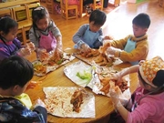 유치원 뒷뜰의 텃밭에 아이들이 심고 가을 내내 정성을 다해 가꾼 배추를 뽑으며 아이들은 김장하는 날을 손꼽아 기다려 왔습니다. 기다리고 기다리던 12월의 첫째 날! 아이들과 선생님들은 이른 아침부터 김장 준비를 하느라 분주했습니다. 소금에 절여진 배추를 보고 신기해하며 "선생님! 배추가 빨래 같아요!"하며 웃어대는 아이들, 앞치마와 머리 수건을 두르고 배추 속에는 무엇이 들어가는지 열심히 관찰하는 아이들, 매워서 콧등에 땀이 송글송글 맺히면서도 "하나도 안 매워요!, 너무 맛있어요!"하며 맛보는 아이들의 모습이 너무 순수해 보였습니다. 학부모 자원봉사자들께서 아이들이 김치와 함께 먹을 수 있도록 밥과 어묵국을 준비해 주셔서 김장을 하고 난 후에 작은 잔치도 열었습니다. 김장을 직접 해 보면서 아이들은 왜 김장을 하는지, 김장을 할 때는 무엇이 필요한지, 배추가 어떻게 변화되었는지를 스스로 알게 되었답니다.