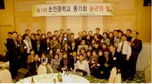 11월 27일 지난 토요일 , 경북 성주군 초전중학교 4회(1977년 졸업) 졸업생들은 중학교 시절의 은사 두 분을 모시고 성서 세인트 웨스튼 호텔에서 2004년 송년의 밤을 가졌다. 턱에 숨이 차도록 달려와 어느 새 40문턱을 너머서고, 한 숨 쉬고 돌아 보니 옛 친구들, 선생님이 그립구나! 기약 없던 작별이 세월을 너머 건강한 모습으로 다시 만남은 살아 있는 기쁨이 아니겠느냐! 선생님! 친구들아! 너무 너무 반갑다. 주름도 생기고 흰 머리칼도 보이지만 단발머리, 빡빡머리의 까만 교복을 입은 정신 연령과 마음으로 돌아 간다. 때로는 고달프고 힘들었던 삶의 여정,모든 것 훌훌 벗어 던지고 지금은 무엇이 필요하랴. 오직 순수했던 우리 마음만이 있으면 되는 걸... 밤이 너무 짧구나! 취해도 되지 않겠느냐! 사랑으로, 그리움으로, 아픔으로... 울지는 말아야지... 선생님! 건강하시고 또 뵙게 되기를! 친구들아! 건강하게 또 만나자꾸나! 고맙구나! 아이들아! 잘 자라주어서 너무 기쁘다. 비록 부피는 커졌지만 너희는 영원한 나의 아이들이다. 외롭고 힘들 때는 언제나 찾아오너라. 내 품은 넉넉하고 푸근하다. 어리광도 부리고 쉬어 가거라. 인연에 감사한다.