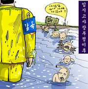 '모든 사람은 앞과 뒤에 두 개의 지갑을 차고 다닙니다. 앞의 지갑은 이웃 사람들의 결점으로 가득 차 있고, 뒤의 지갑에는 자기 자신의 결점으로 가득 채워져 있습니다' '이솝 우화'에 나오는 글로 짧지만 우리가 어떻게 살아가야 하는지를 가르쳐줍니다. 세상살이는 이웃 사람들과 더불어 해야 제 맛이 납니다. 같이 생활하는 친구들을 이해하고, 낳아서 길러주신 부모님과 가르침을 주시는 스승의 은혜에 감사할 줄도 알아야 합니다. 그런데 때로는 자신의 결점은 덮어둔 채 다른 사람을 시기하고, 질투하고, 미워하고, 원망을 합니다. 시골의 한 초등학교에 머리가 희끗희끗한 중년의 교사가 있습니다. 그는 교사로 부임하며 모든 아이들을 예의 바르고, 남을 생각하고, 조금은 손해 볼 줄도 알고, 말보다 실천이 앞서도록 하겠다고 자신과 약속했습니다. 그런데 교육현실은 그렇지 않았습니다. 이기적인 아이들을 보거나 교육을 걱정하는 소리를 들을 때마다 그는 모든 것이 자기 잘못이라며 자신을 탓했습니다. 이렇게 작은 일부터 남의 탓이 아니라 내 탓이라고 여겨야 합니다. 서로 자기 탓이라며 책임지려는 사회라야 건전하게 발전합니다. 행복은 스스로 만들어 가는 겁니다. 추운 겨울날 주고받던 군밤이나 군고구마와 같이 따뜻한 정을 이웃에 전하면서 어제보다 나은 내일을 꿈꾸고, 오늘보다 나은 내일에서 희망을 찾는다면 누구나 행복할 수 있습니다. 위에 있는 글은 우리 학교의 문집(송정봉) 발간을 위해 십여일 전 문집 담당선생님에게 제출한 제 글입니다. 요즘 아마 2005학년도 대학수학능력시험 부정행위 사건만큼 큰 뉴스거리가 없을 것입니다. 그만큼 말도 많고, 탈도 많은 게 교육이기도 하고요. 그런데 여기 ‘바른생활’이라는 ID를 가진 한 고등학교 선생님의 글이 우리 모두의 가슴을 파고들며 교육을 깊이 생각해보게 합니다. 초등교육을 담당하고 있는 저로서는 우리 교육에 아직 희망이 많다는 확신을 갖게 하고요. 국민 여러분! 결국 오고야 말았습니다. 혹시나 하면서도 설마 했던 일이 결국 대명천지에 드러났습니다. 건강한 신체와 건강한 정신으로 순수한 이상과 원대한 꿈을 꾸면서, 진실을 추구하고 진리를 탐구하면서 미래의 이 나라를 이끌고 갈 동량지재들이 범죄자가 되고 말았습니다. 우리의 제자들이, 우리의 자녀들이, 우리 민족의 미래들이 오늘 뉴스화면을 시커멓게 장식하면서, 얼굴을 가리운 채 호송차에 타고 있었습니다. 이 무슨 일이란 말입니까? 차마 얼굴을 들고 뉴스 화면을 볼 수 없었습니다. 감히 제가 교탁 위에서 아이들을 향하여 무엇을 가르친단 말씀입니까? 저는 입만 열면 경쟁을 외치고, 손만 들면 점수를 잘 받는 법을 칠판에 썼습니다. 원칙과 상식에 어긋나도 "괜찮아"를 반복하며, 대학에 들어가기만 하면 된다는 주절거림으로 아이들을 몰아왔습니다. 한편으로는 현실론을 내세우며, 또 한편으로는 학부모들의 요구를 핑계로, 참으로 열심히 점수 따기 교육을 해왔습니다. 국민 여러분! 감히 누구에게 이 죄값을 돌리겠습니까? 모두 저의 잘못입니다. 양심을 가르치지 못하고, 진실을 가르치지 못하고, 잘못을 잘못이라 가르치지 못했던 이 형편없는 선생놈의 잘못입니다. 제도를 탓하지 않습니다. 시대를 탓하지 않습니다. 모두 사람의 잘못입니다. 사람이 들어서야 할 자리에 간판이 들어서 있고, 인격이 바로 서야 할 자리에 외모가 들어서 있고, 용기와 양심이 들어서야 할 자리에 특권과 물질이 들어서 있습니다. 그 사람이 어떤가를 따지지 못하고, 그 사람이 어떤 대학을 나왔느냐를 따졌습니다. 국민 여러분, 정말 잘못했습니다. 그 아이들에게 돌을 던지지 마십시오. 그 아이들의 부모님들에게도 돌을 던지지 마십시오. 그 아이들의 학교에도 돌을 던지지 마십시오. 모두 이 못난 선생에게 던지십시오. 피 토하는 심정으로 무릎 꿇어 사죄드립니다. ~ 중략 ~ 따뜻한 부모님 곁을 떠나 차디찬 세상의 창안에 갇혀 울고 있을 저 아이들의 아픔을 생각하며 다시 한번 말씀드립니다. 국민 여러분 잘못했습니다. 저에게 돌을 던지십시오. 그럴 겁니다. 엄청난 이번 사태에 누구도 자유로울 수 없을 겁니다. 그 중심에서 약간 비켜 서 있을 뿐 우리 모두의 책임이고, 우리 모두는 공범자입니다. 컨닝을 하다 적발되면 즉각 퇴교조치를 하는 미국의 대학에서마저 우리나라에서 온 유학생들에게만은 컨닝을 한번은 용서해주는 준다는 얘기를 창피해 하기보다는 우스갯소리로 넘기는 세상살이를 하고 있었으니까요? ‘다 내 탓’이라고 자학하지 않아도 됩니다. '남의 탓 보다는 내 탓이 더 크다'는 것을 알기만 하면 됩니다. 그런 사람들이 많아야 우리 교육이 발전합니다. 그래야 영원히 포기할 수 없는 우리의 교육에서 희망을 발견할 수 있습니다.
