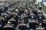 한국교총을 비롯한 교원 5단체가17일 수원지방법원 앞에서 '불법녹음 활용 정서적 아동학대 피소 특수교사 무죄 판결 탄원 기자회견'을 열고 불법녹음자료 증거 능력 배제 등을 촉구하고 있다. 문태혁(왼쪽 두 번째) 한국교총 회장직무대행이17일 수원지방법원 앞 '불법녹음 활용 정서적 아동학대 피소 특수교사 무죄 판결 탄원 기자회견'에서 기자회견문을 낭독하고 있다.