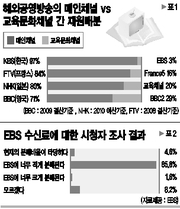 KBS 수신료 인상이 사회적 관심사로 떠오르고 있다. KBS 이사회 내부뿐만 아니라 관계기관, 시민단체 등에서 수신료 인상을 둘러싼 수많은 갑론을박이 이어지고 있다. 그러나 정작 EBS 수신료 인상 문제는 거의 언급조차 되지 않다. 공교육 보완을 요구하면서 정작 콘텐츠 개발을 위한 재정문제에는 전혀 눈길을 주지 않고 있는 상황이다. ▨ KBS 수신료의 3% 배분=2010년 EBS 예산 2440억 중 수신료 비중은 156억으로 6.4%에 불과하다. KBS로부터 수신료의 3%(위탁징수비 공제 후)를 배분받는 구조가 10년간 지속되면서 EBS의 변화된 자금수요를 전혀 반영하지 못하고 있는 것이다. EBS측은 “KBS의 월 TV수신료 2500원 중 EBS 배분액은 70원에 불과”하다며 “지난 국감에서도 공교육 보완을 위한 EBS의 역할에 대한 지적이 많았지만 현재의 배분액으로는 국민적 수요를 따라갈 수 없는 것이 현실”이라고 밝혔다. EBS와 KBS간 수신료 배분에 대한 어떤 공식 협의절차가 없는 가운데 EBS는 지난 6월 KBS에 배분액 970원 확대요청 공문을 발송하고 9월 사장 간담회 등을 통해 수신료 배분확충을 논의했다. 또 방송통신위원회에도 이를 설명하는 노력을 기해왔지만 어떤 확답도 받지 못한 상황이다. ▨ 영국 BBC 배분율 71:29=현재 대한민국 공영방송의 TV수신료 배분비율은 KBS와 EBS가 97:3이다. 반면 해외 공영방송은 교육문화채널에 적극적인 투자를 보여 우리와 대비되는 모습이다.(표1) 영국의 공영방송 BBC는 메인채널(BBC1)과 교육문화채널(BBC2) 재원 배분비율이 71:29로 나타났으며, 교육에 대한 국민적 관심이 우리와 가장 비슷한 일본의 경우도 80:20으로 교육문화채널에 많은 비중의 배분을 하고 있음을 알 수 있다. ▨ 콘텐츠 개발 위해 수신료 인상 필요=EBS가 최근 발표한 수신료에 대한 시청자 조사 결과(표2)를 보면, ‘현재 수신료 배분’에 대해 ‘EBS에 너무 적게 분배된다(85.6%)’는 응답이 ‘현재가 타당하다’(4.6%)는 답변보다 압도적으로 높게 나타났다. 70원이라는 배분액은 시청자도 인정하는 불합리한 배분이라는 것이 증명된 셈이다. 고려대학교 고등교육정책연구소 안선회 교수는 “수신료만 인상된다면 콘텐츠 개발뿐만 아니라 학생의 학습지원 및 관리, 학부모의 자녀 학습 지원 서비스까지 가능하다”며 “현실적 수신료 반영으로 공교육 보완 역할을 EBS에 충실히 할 것을 요구해야 한다”고 수신료 인상의 필요성을 역설했다. ▨ 970원으로 인상해야=EBS는 “현재 수능 중심에서 벗어나, 초․중등 학생을 위한 창의․인성 교육 등 전 국민 맞춤형 평생교육 서비스를 제공하기 위해서는 TV수신료를 970원으로 인상해야 한다”고 밝히고 있다. EBS는 ▲전문기관 컨설팅 결과 ▲현재 해외 주요 공영방송 경우 전체 수신료 중 교육문화채널에 평균 20% 배분 ▲여당 측 KBS 이사들이 제시한 4600원 인상안 등 3가지 산정근거를 제시하며 수신료 인상을 요구하고 있다. 즉 TV 수신료 인상안 4600원에 해외 평균 배분율인 20%를 적용하면 920원이 산출되나, 중․장기적으로 필요한 소요재원을 컨설팅 받은 결과가 연평균 2288억원, 가구당 970원의 수신료가 필요하다는 설명이다. 지난 달 19일 EBS 곽덕훈 사장은 취임 1주년 기자회견에서 “국민 모두가 혜택을 받는 양질의 콘텐츠를 만들기 위해서 수신료를 970원으로 인상해야 한다”며 “전 국민이 그 필요성을 인식해줬으면 좋겠다”고 아쉬움을 나타내기도 했다.