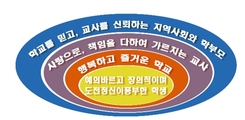 학교교육계획에 대한 소고 학교를 방문하면 관례적으로 학교 요람과 학교교육계획 책자를 보여준다. 그러나 그 학교교육계획이 어떻게 구성되어 있는지에 대해 설명해주는 학교는 많지 않다. 그리고 선생님들은 그런 계획서가 있는지도 모르거나, 그 내용을 잘 살펴보지 않는 경우가 많다. 학교교육계획서가 학교에서 얼마나 중요한 것인지를 모르는 사람은 없다. 학교교육계획서는 첫째, 학교 교육활동의 설계도이다. 학교교육계획서는 학교 구성원들이 구현하고자하는 전반적인 교육활동을 함께 계획 · 수립하는 청사진이다. 우리는 학교교육계획서를 통해서 현재 학교 교육이 어디쯤 와 있으며, 어디로 나아가야할 것인가를 가늠할 수 있다. 둘째, 학교가 지키겠다고 공언한 약속이다. 학교교육계획서는 학교 구성원들이 교육활동에 관한 실천 가능한 계획을 밝히고, 그것을 구체적으로 추진하기 위한 선언서이다. 학교는 약속한 사항들을 충실하게 이행할 수 있도록 지속적으로 점검 · 보완하는 노력을 해야 한다. 셋째, 학교에 관한 종합 안내서이기도하다. 학교교육계획서는 학생과 학부모에게 교육활동에 필요한 사항을 미리 준비할 수 있도록 안내하고, 지역 사회에 학교를 소개하는 자료이다. 끝으로 학교가 추진하고자 하는 모든 교육활동에 필요한 예산을 편성하고 집행하기 위한 기초 자료이다. 이렇게 중요한 학교교육계획서를 형식적으로 작성해, 문서로만 존재하게 하고, 매년 몇 자 고치는 정도로 해서야 되겠는가? 학교교육계획서가 이와 같이 취급된다면 그 학교의 장 · 단기 설계도는 어떻게 되고, 교육 공동체들의 요구 반영과 만족도 제고는 어떻게 할 것인지, 그리고 예산의 편성과 집행은 어떤 기준에 의해 이루어지는지 궁금하기 이를 데 없다.[PART VIEW] 그래서 이번 호에서는 학교교육계획에 들어가야 할 핵심적인 내용과 내용들을 실질적으로 구성하는 방안과 실제로 학교 교육과정 계획을 수립하는 절차를 상세하게 살펴보고, 끝으로 학교교육계획과 예산 편성의 관계가 얼마나 중요한지에 대해 알아보고자 한다. 학교교육계획서에는 어떤 내용이 담기는가 학교교육계획은 단위학교가 1년간 추진해나갈 교육목표와 그에 따른 교육방침을 정하고 구체적인 교육활동계획을 제시함으로써 학교교육의 방향을 나타내는 중심핵이다. 모든 학교는 이 교육계획에 따라 교육활동을 추진하며 계획서에서 정한 교육목표와 방침에 어느 정도 도달했는가를 평가하게 되므로 학교교육계획은 학교경영 결과를 평가하는 준거로서의 기능을 가지고 있다. 따라서 학교교육계획서는 선정된 교육목표를 효율적으로 달성하기 위해 선정된 교육내용과 교육활동이 일정한 순서와 절차, 수단과 방법, 인적 · 물적 · 재정적 자원을 동원해 조직화하고, 그에 따라 안정성, 일관성 있는 교육활동이 전개되도록 명확하게 제시해야 한다. 학교의 교육목표와 비전 설정의 중요성 우선 학교 교육의 방향, 즉 비전이 명확하게 제시되어야 한다. 학교교육의 목표, 추구하는 인간상, 학교 교육활동의 주안점, 지역사회 여건이나 학생들의 여건 등을 고려해 특징적으로 추구해야 할 과제는 무엇인지 등에 대한 비전을 명확히 제시해야 한다. 그래야만 이하 세부 추진 계획이나 운영의 기준을 명확히 할 수 있기 때문이다. 예를 들어, 아래와 같이 학교 교육의 방향을 정하게 되면 교육과정, 생활지도, 교원의 전문성 신장, 지역 사회와의 유대 관계 강화, 예산 편성에 있어 선택과 집행을 할 때의 우선순위 정하기 등이 자연스럽게 이루어질 수 있다. 학교 교육의 90%인 교육과정의 편성과 운영 미래 사회를 이끌어갈 학생들에게 무엇을, 어떻게 가르칠 것인가는 교육에 있어서 가장 중요한 문제이며 교육 관계자들이 항상 염두에 두어야 할 근본적인 문제이다. 그리고 교육과정은 학교교육의 질 관리와 직결되는 가장 핵심적인 영역으로서 교육목적을 달성하기 위해 학교가 학생에게 제공하는 모든 교육내용 및 활동을 담고 있다. 최근 교육과정에서 가장 강조되는 부분은 학교의 특수성 및 지역 사회의 실정에 맞추어 편성 · 운영하되 상위목표와 일관성을 유지하면서 구체적으로 실천 가능한 학교 교육과정(안)을 마련하는 것이다. 학교에서 이루어지는 실제 교육활동에서 가장 핵심적인 부분은 교육과정 중심으로 이루어지고 있다. 교육목표를 설정해 학생들에게 가르칠 교육내용과 교육방법 및 교육평가에 대한 정책을 수립하고, 이러한 정책을 구현하기 위해 교원을 선발해 배치하고, 조직하며, 교육시설과 여건을 마련해 교육활동을 전개하는 모든 일들이 교육과정을 중심으로 전개되고 있는 것이다. 그러나 우리의 교육 현실을 돌아보면 교육과정의 중요성을 강조하면서도 교육과정보다는 교육시책 중심의 교육이 이루어져 왔다. 학교에서는 국가의 교육과정 기준과 시도별 지침에 따라 그 학교의 실정에 따른 학교 교육과정을 만들어, 그 지역과 학교, 학생들에게 알맞은 교육을 해야 한다. 교육활동이 최종적으로 전개되는 학교의 교육과정은 교원들이 실제로 교육활동을 영위하는 근거가 되는 것이므로 중요한 의미를