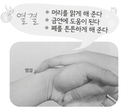 이백이 쓴 몽천모음류별(夢天姥吟留別)라는 싯구중에 “裂缺霹靂(열결벽력), 丘巒崩?(구만붕최). 洞天石扇(동천석선), 訇然中開(굉연중개). 靑冥浩蕩不見底(청명호탕부견저), 日月照耀金銀臺(일월조요금은태)(번개 불과 우뢰가 번쩍 찢어지고, 언덕과 산이 무너지고 꺾이네. 신선 사는 곳의 돌문이 꽝하고 가운데서 열리네. 푸른 하늘 넓어 밑이 안보이고 해와 달은 금은대를 비추네)가 있습니다. 번개, 우뢰에 놀라고 늘어선 산들이 진동하여 신부가 열리니 그 안에 한조각의 금광이 찬란하게 빛나고 구름으로 덮인 산의 운무가 걷혀서 확연이 보입니다. 이번 호에 소개해드릴 열결혈의 작용이 이와 같습니다. 위에서 부터 아래까지 다 통하는 작용을 합니다. 머리를 맑게 해주는 열결 열결(列缺)은 사총혈의 하나로 그 작용이 상당히 많습니다. “사총혈가”에서 “머리끝에서 열결을 찾는다”라고 했습니다. 이처럼 열결혈의 주요작용은 머리부의 질병을 치료합니다. 머리가 어지럽고 현기증이 날 때 열결혈을 자극하면 정신이 원래대로 돌아오게 됩니다. 이것은 마치 천둥번개가 쳐서 하늘과 땅을 모두 쓸어 없애 흙먼지로 뿌연 하늘을 다시 청명하게 맑게 해주는 것과 같습니다. 그래서 열결혈을 ‘천둥번개의 신’이라고도 부릅니다. 열결은 고대에는 번개였습니다. 열은 나눈다는, 결은 터져 갈라진다는 의미를 가지고 있습니다. 번개의 형상이 하나가 나뉘어서 둘이 되고, 중간에는 마치 봉제선이 갈라지는 것과 같다고 해서 ‘열결’이라고 이름을 붙였습니다. 열결혈의 위치는 손목에서 양쪽 근육사이의 중간에 있어 있습니다. 열결은 폐의 낙혈이자 여기서 다시 대장경 가는 시작점입니다. 하나가 둘로 나뉘고, 두개의 경락이 지나가는 사이에서 딱 호응해서 열결이라는 이름이 붙었습니다. 열결은 하늘과 땅을 깨끗하게 씻어줍니다. 그래서 머리 쪽의 질병뿐만 아니라 우리 몸의 중간과 아래 부분의 문제들 즉 예를 들면 소변을 시원하게 배출하지 못하는 분이나 또는 어린아이들의 야뇨증에도 좋습니다. 고수 검객이 한번 손을 써서 요괴와 악마를 칼로 쳐서 순식간에 그림자도 없이 사라져버리게 하는 것과 같습니다. 폐를 도와주는 혈로 금연, 분필가루에도 좋아 현대인들에게는 열결이 금연에 아주 좋은 혈자리이기도 합니다. 담배를 피다보면 무의식중에 골초가 되기 쉽습니다. 금연을 계획하고 있는 분이 계시다면 이 혈자리에 관심을 기울여 주십시오. 매일 엄지나 안마봉으로 이 혈자리를 자극하면 흡연욕구가 억제됩니다. 흡연은 폐암 등을 비롯해서 폐를 직접 상하게 합니다. 열결은 폐경상의 혈이어서 당연히 폐의 조절작용을 돕습니다. 그래서 폐를 상하게 하는 업무에 종사하는 분들 특히 교육일선에서 분필을 들이마셔야 하는 선생님은 자주 열결혈을 안마해 주시면 좋습니다. 폐는 흉강에 있으며 가슴은 하늘이고 하늘의 기는 언제나 청명하고 깨끗합니다. 정신이 몽롱해서 우리의 마음이 괴로울 때가 있습니다. 담배를 많이 피우게 되면 우리 머리는 복잡하고 마음은 번민으로 가득 차게 됩니다. 담배를 많이 피면 피울수록 문제는 더욱더 꼬여가고 복잡해지는 악순환으로 이어지게 됩니다. 열결혈은 이런 악순환을 단칼에 끊어주는 지름길입니다. 열결혈자리는 사진처럼 손을 꼈을 때 검지 끝에 있습니다. 휴식시간에 틈날 때 마다 이 부분을 안마해 주시면 됩니다.